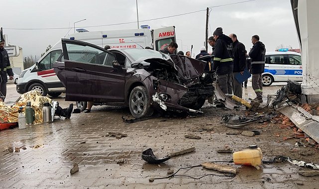 Murat ÖZELCİ/EFLANİ (Karabük), (DHA)- KARABÜK'ün Eflani ilçesinde otomobilin refüje ve akaryakıt istasyonundaki beton bloka çarptığı kazada 1'i çocuk, 5 kişi yaralandı
