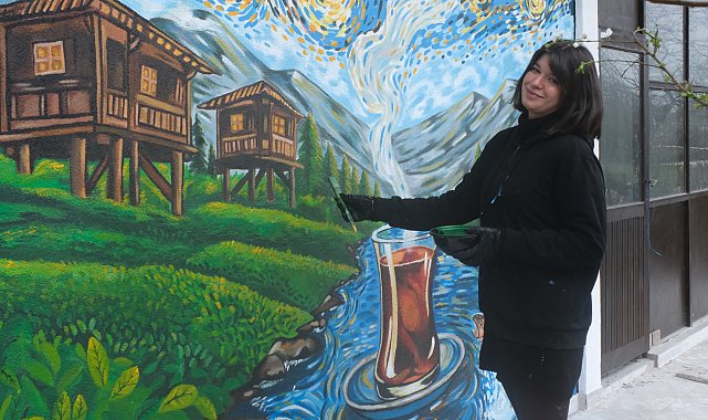 Rize'nin simgeleri Van Gogh tarzıyla duvara yansıdı