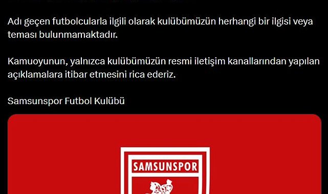 SAMSUNSPOR, sanal medyada ve internet sayfalarında transfer edileceğine dair paylaşımlar yapılan futbolculardan Cenk Şen ve Bekir Böke haberlerini yalanladı.Kırmızı-beyazlı kulüp, Bodrumspor forması giyen Cenk Şen ile Sivasspor'da oynayan Bekir Böke ile ilgilenildiğine yönelik haberlerin gerçeği yansıtmadığını duyurdu. Kulüpten yapılan açıklamada, "Son günlerde bazı basın yayın organları ve sanal medya mecralarında, kulübümüzün Cenk Şen ve Bekir Böke ile ilgilendiğine dair çıkan haberler üzerine açıklama yapma gereği doğmuştur. Adı geçen futbolcularla ilgili olarak kulübümüzün herhangi bir ilgisi veya teması bulunmamaktadır. Kamuoyunun, yalnızca kulübümüzün resmi iletişim kanallarından yapılan açıklamalara itibar etmesini rica ederiz" ifadelerine yer verildi.