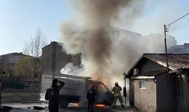 Sancaktepe'de seyir halindeki kamyonette çıkan yangın söndürüldü