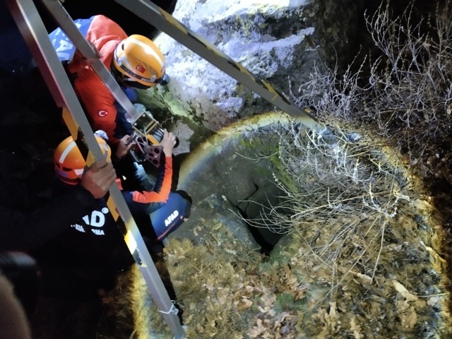 Sarnıçta mahsur kalan definecileri ekipler kurtardı