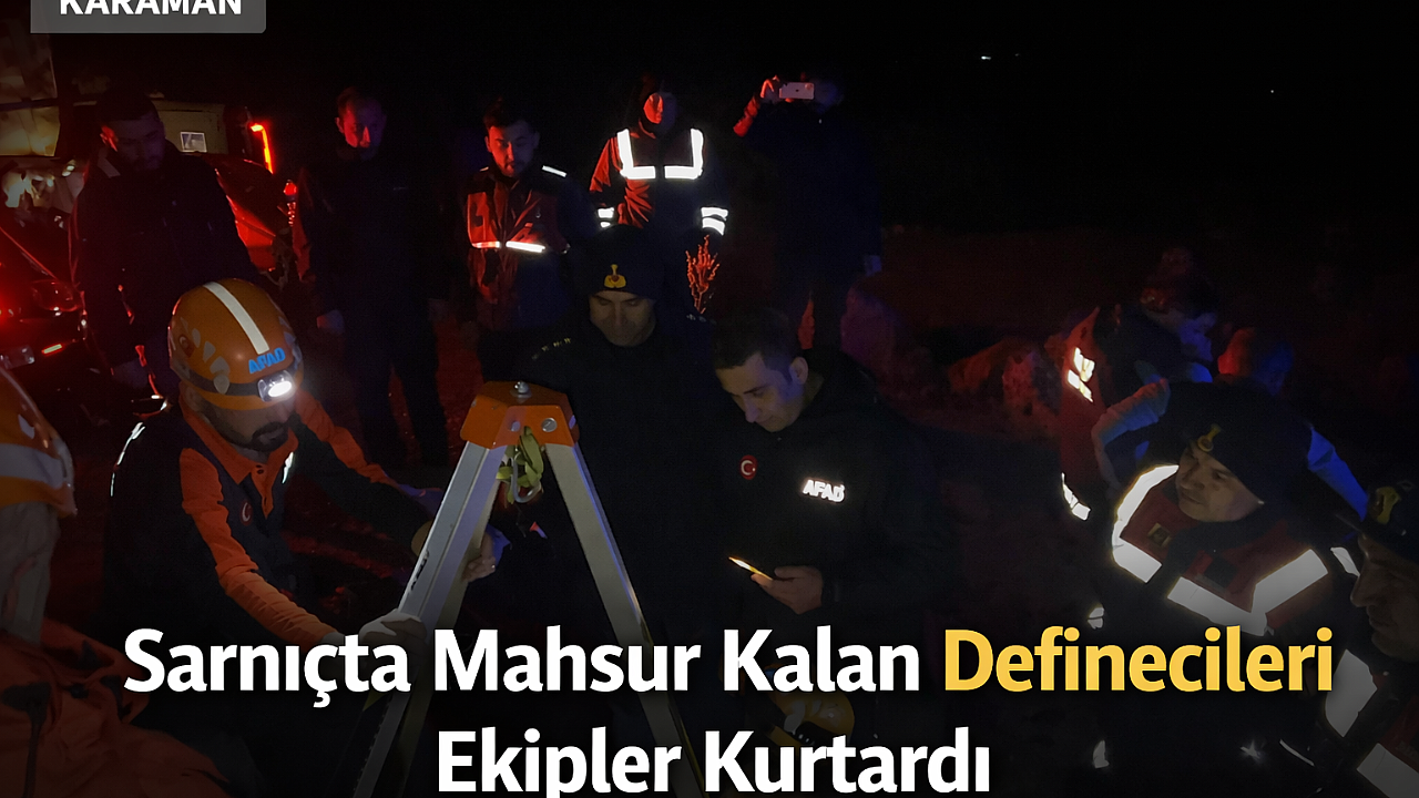 KARAMAN'da kaçak kazı yapmak için indikleri 25 metre derinlikteki sarnıçta halatın kopması sonucu mahsur kalan 3 kişi, ekipler tarafından kurtarıldı.