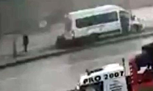Servis minibüsü refüje çıktı, yaya saniyelerle kurtuldu