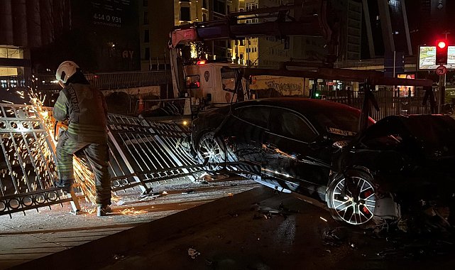 Şişli'de lüks otomobil demir korkuluklara çarptı: 3 yaralı