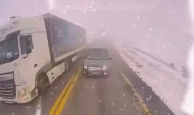 ARDAHAN- Şavşat kara yolunun Sahara mevkisinde, önünde giden TIR'ı sollayan hafif ticari aracın karşıdan gelen TIR'la çarpıştığı kazada 2 kişi yaralandı. Sisli havada hatalı sollama sonucu meydana gelen kaza araç kamerasına yansıdı.Kaza, Ardahan-Şavşat kara yolunun Sahana mevkisinde meydana geldi. Ardahan istikametine seyir halinde olan 08 AH 854 plakalı hafif ticari araç, sisle kaplı yolda önündeki TIR'ı sollamak isterken karşıdan gelen TIR'la çarpıştı. Araç kamerasına da yansıyan kaza sonrası bölgeye AFAD, jandarma ve sağlık ekipleri sevk edildi. Hatalı sollama sonucu hurdaya dönen hafif ticari araç içerisindeki 2 kişi AFAD ekipleri tarafından sıkıştıkları yerden çıkarıldı. Sağlık ekipleri tarafından olay yerinde ilk müdahalesi yapılan yaralılar, ambulansla Ardahan Devlet Hastanesine götürüldü.Kaza sebebiyle Ardahan-Şavşat kara yolu çift yönlü olarak bir süre trafiğe kapatıldı.