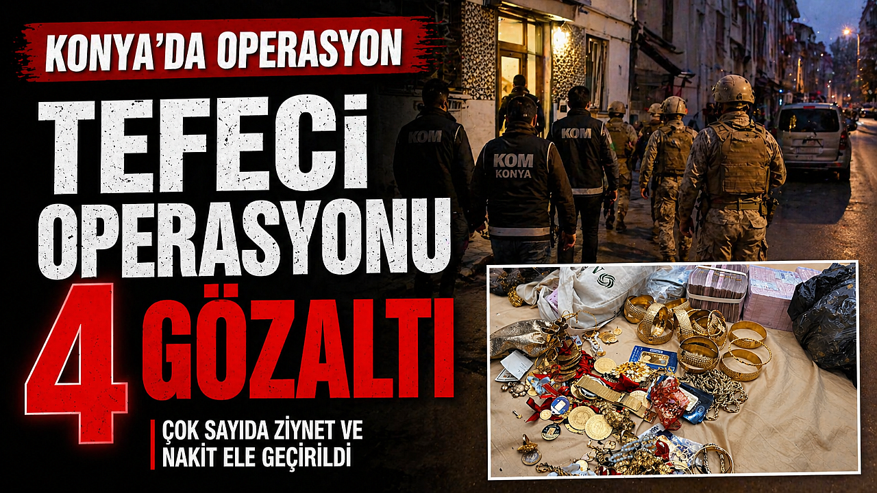 KONYA'da 'emlakçı' ve 'oto galerici' adı altında tefecilik yapan suç örgütüne yönelik operasyonda 4 kişi gözaltına alındı.Konya Cumhuriyet Başsavcılığı tarafından 'emlakçı' ve 'oto galerici' adı altında tefecilik yapan suç örgütüne yönelik soruşturma başlatıldı. Soruşturma kapsamında araştırma yapan Konya Emniyet Müdürlüğü Kaçakçılık ve Organize Suçlarla Mücadele Şubesi ekipleri, şüphelilerin kimliklerini belirledi. Teknik ve fiziki takibin ardından Özel Hareket ekibi eşliğinde eş zamanlı operasyon düzenlendi. 30 MİLYON TL DEĞERİNDE ZİYNET EŞYASI BULUNDU Operasyonda 4 kişi gözaltına alındı. Adreslerde yapılan aramada; piyasa değeri yaklaşık 30 milyon TL olan ziynet eşyası ile 3 milyon TL, 665 euro, 422 adet senet. 5 çek, 384 uyuşturucu hap, 1 ruhsatsız av tüfeği ve çok sayıda dijital materyal ele geçirildi. Olaya ilişkin soruşturma sürüyor. (DHA)FOTOĞRAFLI