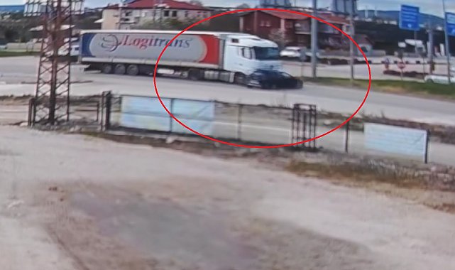 TIR'ın, çarptığı otomobili metrelerce sürüklediği kaza kamerada