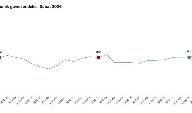TÜRKİYE İstatistik Kurumu (TÜİK), şubat ayında ekonomik güven endeksinin 1,4 oranında artarak 100,7 olduğunu açıkladı.TÜİK, Şubat 2026 dönemine ilişkin ekonomik güven endeksi verilerini açıkladı. Buna göre; ekonomik güven endeksi ocak ayında 99,4 iken, şubat ayında yüzde 1,4 oranında artarak 100,7 değerini aldı. Bir önceki aya göre şubat ayında tüketici güven endeksi yüzde 2,3 oranında artarak 85,7 değerini, reel kesim (imalat sanayi) güven endeksi yüzde 1,1 oranında artarak 104,1 değerini, hizmet sektörü güven endeksi aynı düzeyde kalarak 113,8 değerini, perakende ticaret sektörü güven endeksi yüzde 2,9 oranında artarak 115,9 değerini, inşaat sektörü güven endeksi yüzde 2,1 oranında azalarak 83,9 değerini aldı.