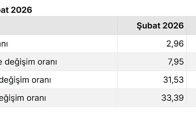 TÜRKİYE İstatistik Kurumu (TÜİK), şubat ayında tüketici enflasyonunun yıllık yüzde 31,53, aylık yüzde 2,96 olduğunu açıkladı.TÜİK, Şubat 2026 dönemine ilişkin enflasyon verilerini açıkladı. Buna göre; tüketici fiyatları şubat ayında bir önceki aya göre yüzde 2,96 artış, bir önceki yılın aralık ayına göre yüzde 7,95 artış, bir önceki yılın aynı ayına göre yüzde 31,53 artış ve 12 aylık ortalamalara göre yüzde 33,39 artış olarak gerçekleşti.YILLIK GIDA ENFLASYONU YÜZDE 36,44Tüketici fiyatlarında en yüksek ağırlığa sahip üç ana harcama grubunun yıllık değişimleri; gıda ve alkolsüz içeceklerde yüzde 36,44 artış, ulaştırmada yüzde 28,86 artış ve konut, su, elektrik, gaz ve diğer yakıtlarda yüzde 42,33 artış olarak gerçekleşti. İlgili ana harcama gruplarının yıllık değişime olan katkıları ise gıda ve alkolsüz içeceklerde 9,07, ulaştırmada 4,63 ve konut, su, elektrik, gaz ve diğer yakıtlarda 6,24 yüzde puan oldu. En yüksek ağırlığa sahip üç ana harcama grubunun aylık değişimleri; gıda ve alkolsüz içeceklerde yüzde 6,89 artış, ulaştırmada yüzde 2,58 artış ve konut, su, elektrik, gaz ve diğer yakıtlarda yüzde 2,40 artış olarak gerçekleşti. İlgili ana grupların aylık değişime olan katkıları ise gıda ve alkolsüz içeceklerde 1,71, ulaştırmada 0,43 ve konutta 0,27 yüzde puan oldu. Endekste kapsanan 174 alt sınıftan, 27 alt sınıfın endeksinde düşüş gerçekleşirken, 5 alt sınıfın endeksinde değişim olmadı. 142 alt sınıfın endeksinde ise artış gerçekleşti.KİRA ARTIŞ ORANITüketici enflasyonunun 12 aylık ortalaması baz alınan kira artış oranı da yüzde 33,39 oldu. Şubat ayında ev ve iş yeri kiraları en fazla yüzde 33,39 oranında artırılabilecek.YILLIK ÜRETİCİ ENFLASYONU YÜZDE 27,56Yurt içi üretici fiyatları şubat ayında, bir önceki aya göre yüzde 2,43 artış, bir önceki yılın aynı ayına göre yüzde 27,56 artış ve 12 aylık ortalamalara göre yüzde 25,60 artış gösterdi.
