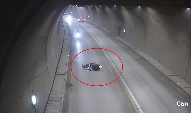 Tünelde motosikletin devrilip sürüklendiği kaza kamerada