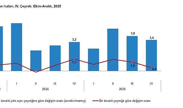 TÜRKİYE İstatistik Kurumu (TÜİK), ekonomik büyümeye işaret eden Gayrisafi Yurt İçi Hasılanın (GSYH) 2025 yılında yüzde 3,6 arttığını açıkladı.TÜİK, 2025 yılı 4'üncü çeyrek gayrisafi yurt içi hasıla verilerini açıkladı. Buna göre; üretim yöntemine göre 4 çeyrek toplamıyla elde edilen yıllık GSYH, zincirlenmiş hacim endeksi olarak, 2025 yılında bir önceki yıla göre yüzde 3,6 arttı. Üretim yöntemine göre cari fiyatlarla GSYH, 2025 yılında bir önceki yıla göre yüzde 41,3 artarak 63 trilyon 20 milyar 906 milyon TL oldu. Kişi başına GSYH 2025 yılında cari fiyatlarla 712 bin 200 TL, dolar cinsinden 18 bin 40 olarak hesaplandı.İNŞAAT SEKTÖRÜ 2025 YILINDA YÜZDE 10,8 ARTTIGSYH'yi oluşturan faaliyetler incelendiğinde; 2025 yılında bir önceki yıla göre zincirlenmiş hacim endeksi olarak; inşaat sektörü toplam katma değeri yüzde 10,8, bilgi ve iletişim faaliyetleri yüzde 8, ürün üzerindeki vergiler eksi sübvansiyonlar yüzde 6,9, ticaret, ulaştırma, konaklama ve yiyecek hizmetleri yüzde 4,6, diğer hizmet faaliyetleri yüzde 4,3, mesleki, idari ve destek hizmet faaliyetleri yüzde 4, finans ve sigorta faaliyetleri yüzde 3,8, sanayi yüzde 2,9, gayrimenkul faaliyetleri yüzde 2,7, kamu yönetimi, eğitim, insan sağlığı ve sosyal hizmet faaliyetleri yüzde 1 arttı. Tarım sektörü ise yüzde 8,8 azaldı.TÜRKİYE EKONOMİSİ 4'ÜNCÜ ÇEYREKTE YÜZDE 3,4 BÜYÜDÜGSYH 2025 yılının 4'üncü çeyrek ilk tahmini; zincirlenmiş hacim endeksi olarak, bir önceki yılın aynı çeyreğine göre yüzde 3,4 arttı. Mevsim ve takvim etkilerinden arındırılmış GSYH zincirlenmiş hacim endeksi, bir önceki çeyreğe göre yüzde 0,4 arttı. Takvim etkisinden arındırılmış GSYH zincirlenmiş hacim endeksi, 2025 yılının 4'üncü çeyreğinde bir önceki yılın aynı çeyreğine göre yüzde 3,4 arttı. Üretim yöntemiyle Gayrisafi Yurt İçi Hasıla tahmini, 2025 yılının 4'üncü çeyreğinde cari fiyatlarla bir önceki yılın aynı çeyreğine göre yüzde 41,4 artarak 18 trilyon 467 milyar 295 milyon TL oldu. GSYH'nin 4'üncü çeyrek değeri cari fiyatlarla dolar bazında 438 milyar 605 milyon olarak gerçekleşti.HANEHALKI TÜKETİM HARCAMALARI YÜZDE 4,1 ARTTIYerleşik hanehalklarının nihai tüketim harcamaları, 2025 yılında bir önceki yıl zincirlenmiş hacim endeksine göre yüzde 4,1 arttı. Hanehalkı tüketim harcamalarının cari fiyatlarla GSYH içindeki payı yüzde 54,4 oldu. Yerleşik hanehalklarının nihai tüketim harcamaları 2025 yılının 4'üncü çeyreğinde bir önceki yılın aynı çeyreğine göre zincirlenmiş hacim endeksi olarak yüzde 5,2 arttı. Devletin nihai tüketim harcamaları yüzde 0,9 azalırken gayrisafi sabit sermaye oluşumu yüzde 5,4 arttı.Bir önceki yıl zincirlenmiş hacim endeksine göre 2025 yılında mal ve hizmet ihracatı yüzde 0,3 azalırken ithalatı yüzde 4,9 arttı. Mal ve hizmet ihracatı, 2025 yılının 4'üncü çeyreğinde bir önceki yılın aynı çeyreğine göre zincirlenmiş hacim endeksi olarak yüzde 2,3 azalırken ithalatı yüzde 3,8 arttı.İŞGÜCÜ ÖDEMELERİ YÜZDE 40,4 ARTTIİşgücü ödemeleri 2025 yılında bir önceki yıla göre yüzde 40,4 artarken, net işletme artığı/karma gelir yüzde 44,2 arttı. 2025 yılının 4'üncü çeyreğinde ise işgücü ödemeleri bir önceki yılın aynı çeyreğine göre yüzde 36,9 artarken, net işletme artığı/karma gelir yüzde 44,2 arttı. İşgücü ödemelerinin cari fiyatlarla Gayrisafi Katma Değer içerisindeki payı geçen yıl yüzde 37 iken bu oran 2025 yılında yüzde 36,9 oldu. Net işletme artığı/karma gelirin payı ise yüzde 43,1 iken yüzde 44,1 oldu.