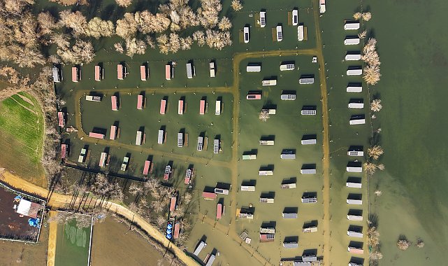 BURSA'da Uluabat Gölü'ndeki su seviyesinin yükselmesiyle, sular altında kalan tiny house ve hobi evleri, dronla görüntülendi.Nilüfer ilçesinde etkili olan sağanakların ardından Uluabat Gölü'nün su seviyesi 10 metre yükselip taştı. Göl suları yerleşim alanlarına ulaşırken, Akçalar Mahallesi'nde çok sayıda tiny house ve hobi evi de su altında kaldı. Yolların ulaşıma kapandığı bölgedeki evlerde de hasar meydana geldi. Su altında kalan bölge dronla görüntülendi.