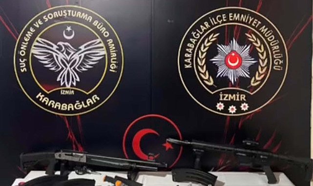 İZMİR'in Karabağlar ilçesinde silah yaralısı olarak gittiği hastanede çelişkili ifadeler verip, tedavi olmadan çıkan M.A.B.'nin evinde ve otomobilinde arama yapan polis, Uzi marka makineli tabanca, 1 ruhsatsız tabanca, 2 ruhsatsız pompalı av tüfeği, silahlara ait mühimmat ve çeşitli tür ve miktarlarda uyuşturucu ele geçirildi. Olayla ilgili M.A.B. ve evdeki babası ile eniştesi gözaltına alındı. Gündüz saatlerinde tabancayla yaralanmış halde Atatürk Eğitim ve Araştırma Hastanesi'ne gelen M.A.B.'nin, şüpheli ifadeleri polisi harekete geçirdi. Karabağlar İlçe Emniyet Müdürlüğü Suç Önleme ve Soruşturma Büro Amirliği ekipleri, M.A.B.'nin hastane polisine tutarsız bilgiler verdiğini ve ardından tedaviyi reddedip hastaneden ayrıldığını belirledi. Olayın meydana geldiği ev tespit eden polis, adrese gitti. Evde yapılan aramada ruhsatsız Uzi marka makineli tabanca, 1 ruhsatsız tabanca, 2 ruhsatsız pompalı av tüfeği, 6 tüfek şarjörü, 1 tabanca şarjörü, 139 uyuşturucu hap, 30 gram esrar ve 63 bin TL ele geçirildi. Ayrıca M.A.B.'nin evin önündeki otomobilinde yapılan aramada ise 69 adet 9 mm çapında fişek, 1 Rambo bıçağı bulundu. Polis ekipleri, kazayla kendisini vurduğunu ileri süren M.A.B.'nin tedavi amaçlı başka bir hastaneye gittiğini belirledi. Tedavisinin ardından M.A.B. ile evde bulunan babası A.B. ve eniştesi Ö.G. polis ekiplerince gözaltına alındı. 3 şüphelinin polisteki işlemlerinin sürdüğü bildirildi.