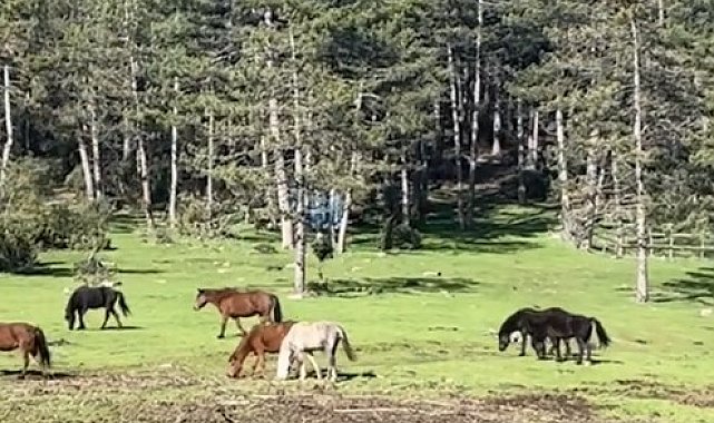 Yaylada gezen yılkı atları görüntülendi