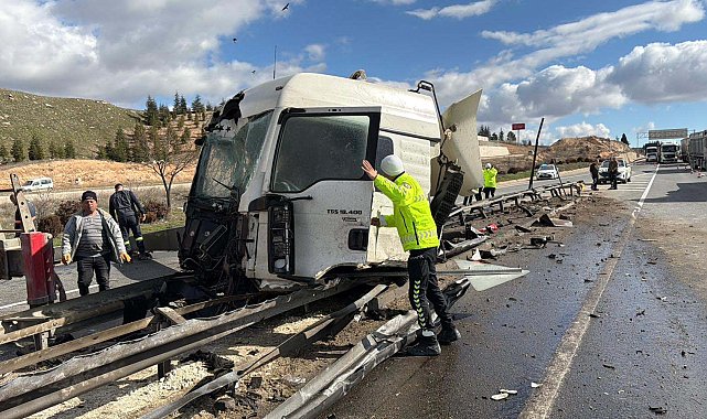 ESKİŞEHİR'de yön tabelası, ardından da bariyere çarpan kamyonun kupası koptu. Kazada sürücü Ahmet Özdemir hafif yaralandı.Kaza, Ankara-Eskişehir kara yolu Kanlıpınar mevkiinde meydana geldi. Ahmet Özdemir'in kontrolünü yitirdiği 06 DA 6348 plakalı kireç taşı yüklü kamyon yön tabelasına, ardından da bariyerlere çarptı. Kazada kamyonun kupası koptu. Çevredekilerin ihbarı üzerine kaza yerine sağlık ve polis ekipleri sevk edildi. Hafif yaralanan sürücü Özdemir, sağlık ekiplerinin müdahalesinin ardından Eskişehir Şehir Hastanesi'ne kaldırılarak tedaviye alındı. Kaza sonrası kamyondan yola akan yağ nedeniyle kara yolunun bir bölümü trafiğe kapatıldı. Polis ekipleri ulaşımı kontrollü sağlarken, bölgede temizlik çalışması başlatıldı. Sürücü Ahmet Özdemir'in sağlık durumunun iyi olduğu öğrenilirken, kazayla ilgili soruşturma sürüyor.