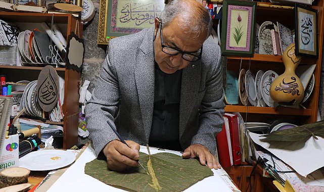 Remzi Batuhan ÜNAL/KAYSERİ, (DHA)- KAYSERİ'de 25 yıldır kaligrafiyle uğraşan emekli öğretmen Osman Durmuş (63), yurt dışından getirttiği özel yapraklara sanatını işliyor